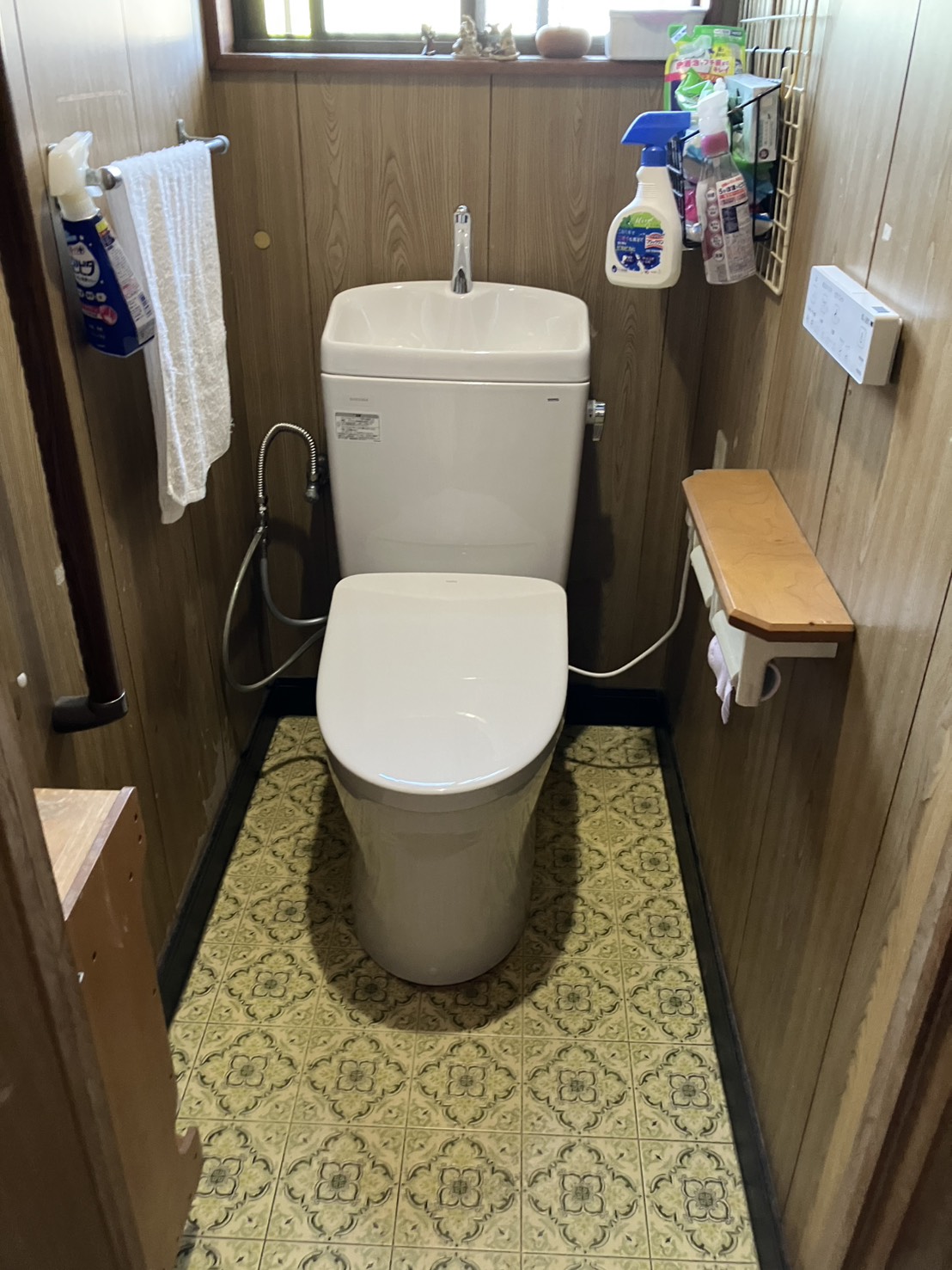 普通の便器では取付できません。そこで便器の中で排水位置を調性できる