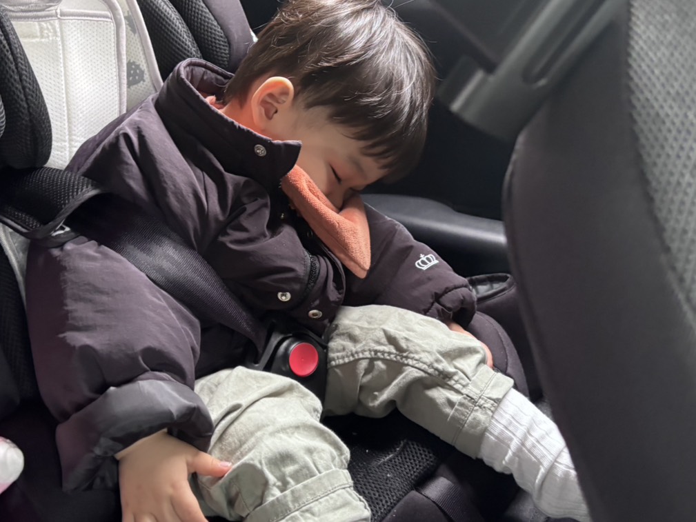 帰りの車は爆睡、よく頑張りました。お疲れ様。